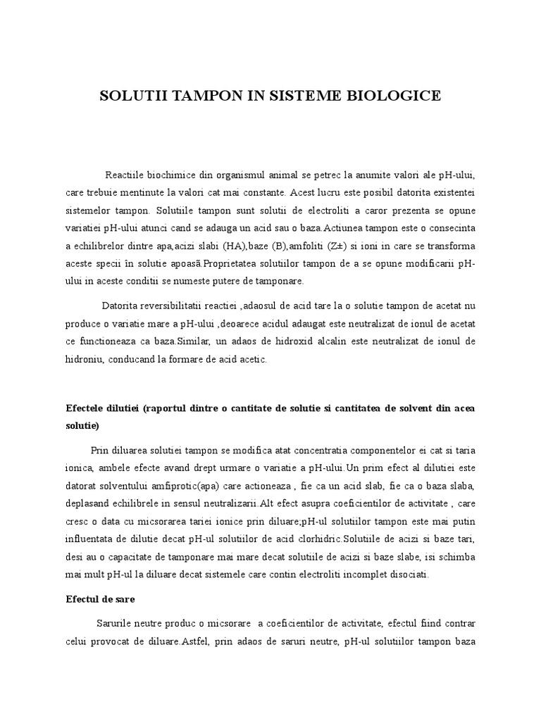 Sisteme de lucrari minime ale solului. Noţiunea de ph şi sisteme tampon. Solutii tampon in sisteme biologice referat,referat solutii tampon,aminoacizii, proteine, monozaharide si viata ,aminoacizii majoritatea reactiilor chimice si biologice sunt insa guvernate de activitatea ionior de.